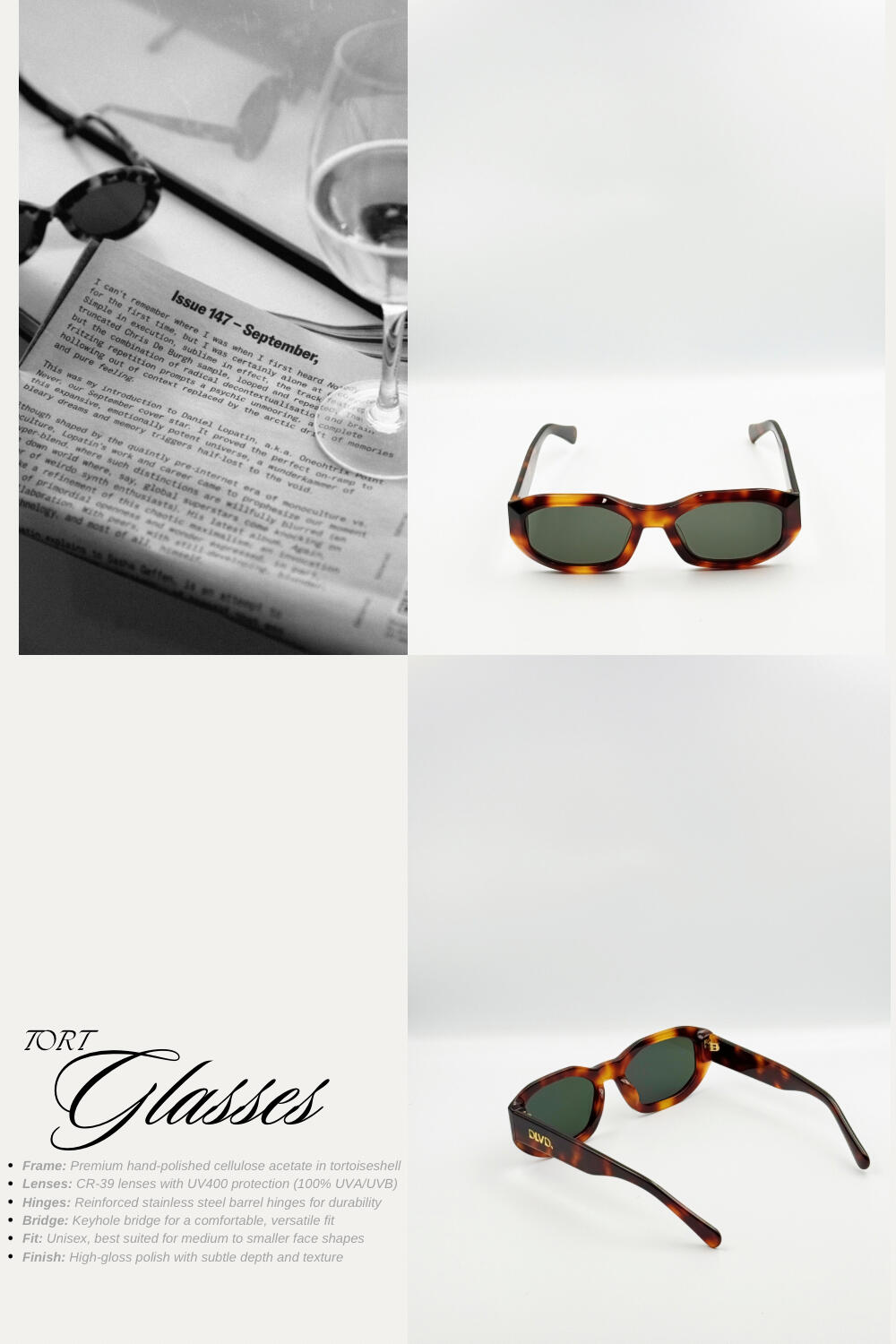 A modern classic with unmistakable attitude, the DLVD Tort Acetate Sunglasses are designed to stand out without trying too hard. With a sculpted rectangular frame in rich tortoiseshell and deep green lenses, this piece brings vintage edge into sharp, contemporary focus. Precision-crafted for style that lasts — and speaks.
