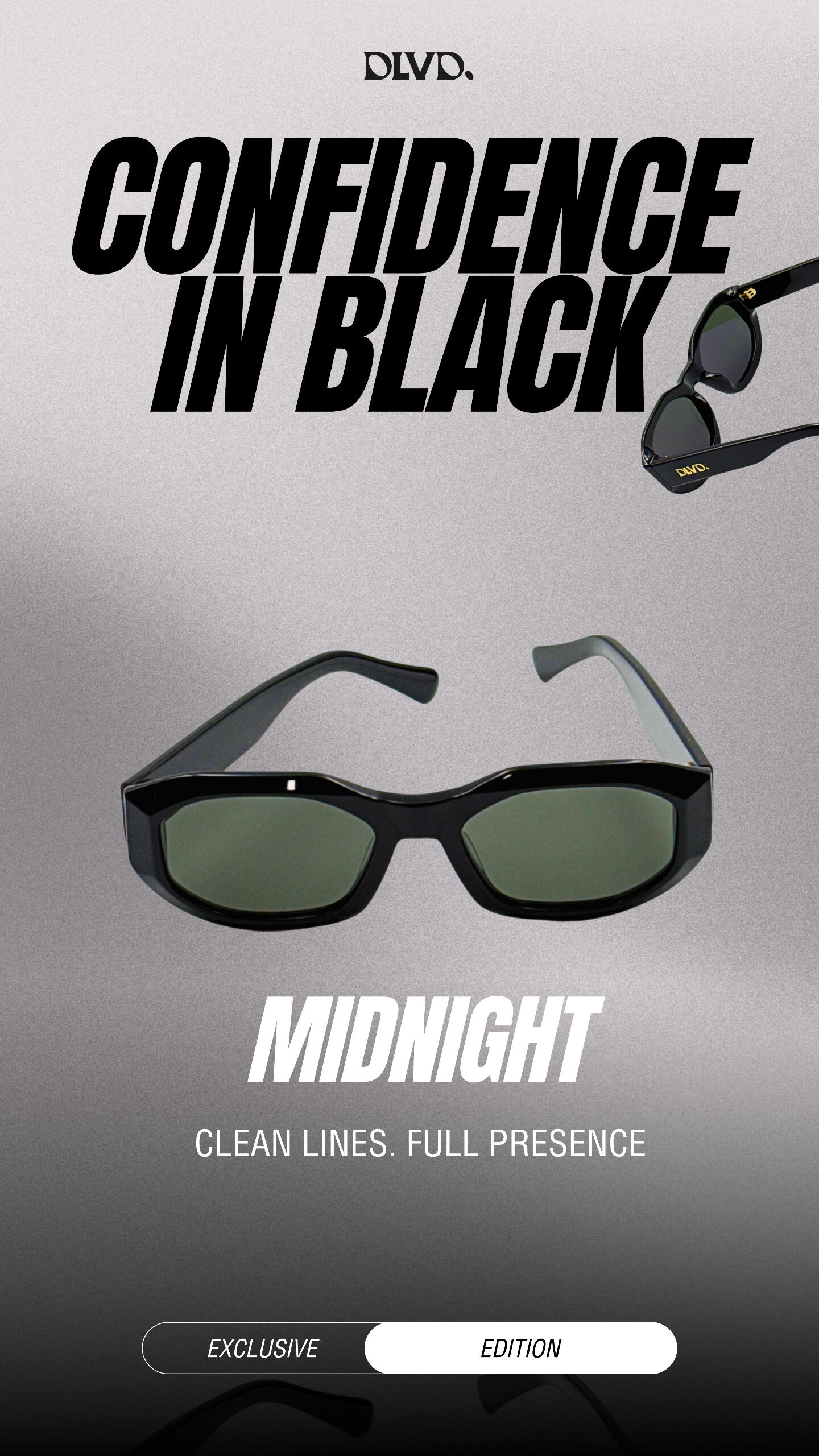 Minimalist in design, maximal in impact — the DLVD Midnight Acetate Sunglasses embody quiet power. With a bold, angular silhouette and deep black gloss finish, this pair commands attention without saying a word. Engineered for durability, comfort, and all-season wear, it’s your everyday armor for sun, street, and beyond.